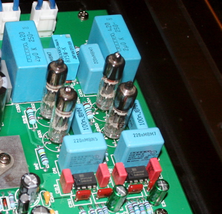 Original was getting great sound with its $3000 Leonardo CD-A9II CD player and AF 2008 preamp and AF-2008 monoblock power amps ($4500 for all three), played through Dynaudio Contour S 1.4s. But off to one side was a smaller CD player that caught my attention, the $800 CD-A6T. That's "T" as in tubes—you can see the little suckers up in the upper right hand corner of the PCB.