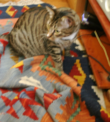 Huckleberry fails to see the appeal of a perfectly flat rug.