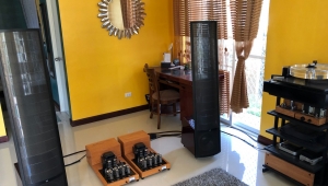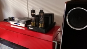 I know this is a lousy picture but it doesn't matter because the important product in it, the new AURALiC Aries Music Streamer (second from the top) is a prototype and it is housed in an enclosure borrowed from the AURALiC Vega DAC (top of the stack) recently praised by JA in the February issue. The Aries ($999) is the link between the NAS where you store your music files and your USB DAC. It is the first implementation of AURALiC's Lightning streaming protocol, based on 802.11ac Gigabit WiFi and capable of gapless play of all current formats, in stereo, up to 32/384, DXD, and DSD128 as well as all common lossy and lossless formats. The Aires has built-in Internet radio and is compatible with all major platforms and many other streaming protocols, including UPnP and DLNA.